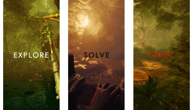 solving puzzles, exploring an untrodden island, experiencing an